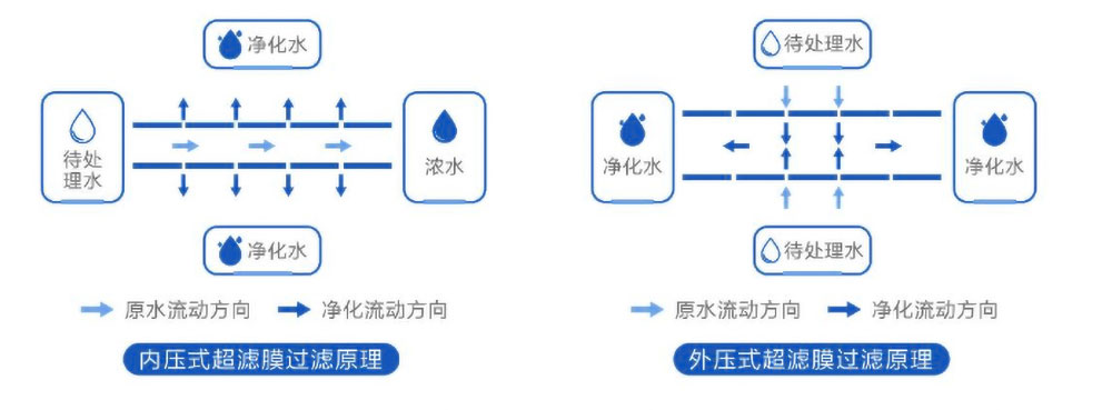 • 超滤过程通常可以理解成与膜孔径大小相关的筛分过程,以膜两侧的压力差为驱动力,以超滤膜为过滤介质,在一定的压力下,当水流过膜表面时,只允许水分子以及比膜孔径小的物质通过,从而达到水体净化的目的。